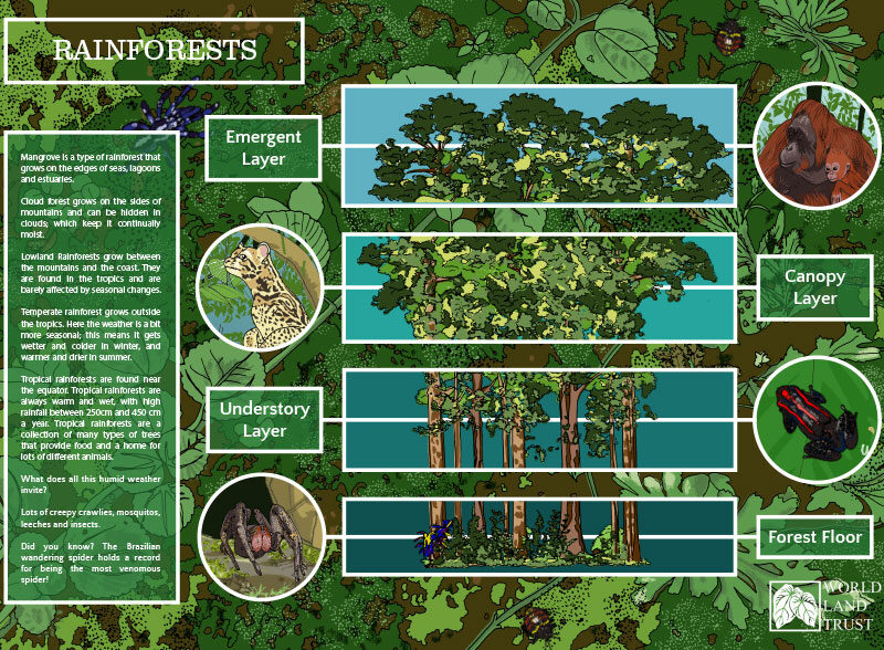 Find out about different kinds of rainforests, their key features, and the species found there.