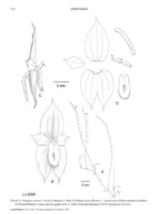 “For the publication, a complete set of measurements of every flower and plant part is needed. For the smaller parts I make measurements electronically from a calibrated photograph. I must also convey the variability of the species, so I examine multiple individuals if I have found more than one. These drawings were for the scientific description of Teagueia anitana.” – Lou Jost.