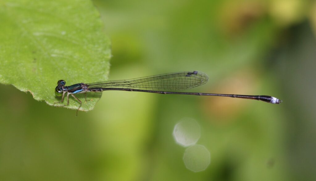 The critically endangered Ivory-tailed Bluetip (Minagrion ribeiroi) known in the Guapiacu valley from a single isolated forest fragment. © Tom Kompier.