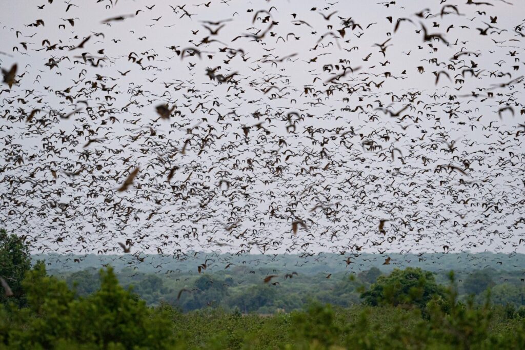 The bats coordinate between themselves to fly out in a certain direction every night. Image: Christelle Mallants