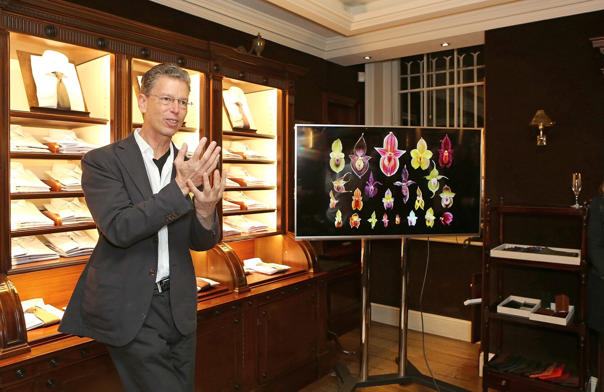 Lou Jost presenting at the Orchids of Baños event held at Dunhill London’s Bourdon House, 2015. Image: David M. Benett