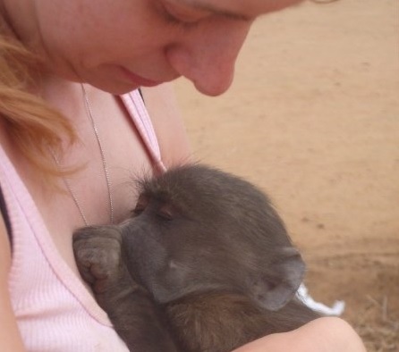 In Namibia, Charlotte personally cared for Chacma Baboon orphans who were completely reliant on volunteers. Image: Charlotte Beckham
