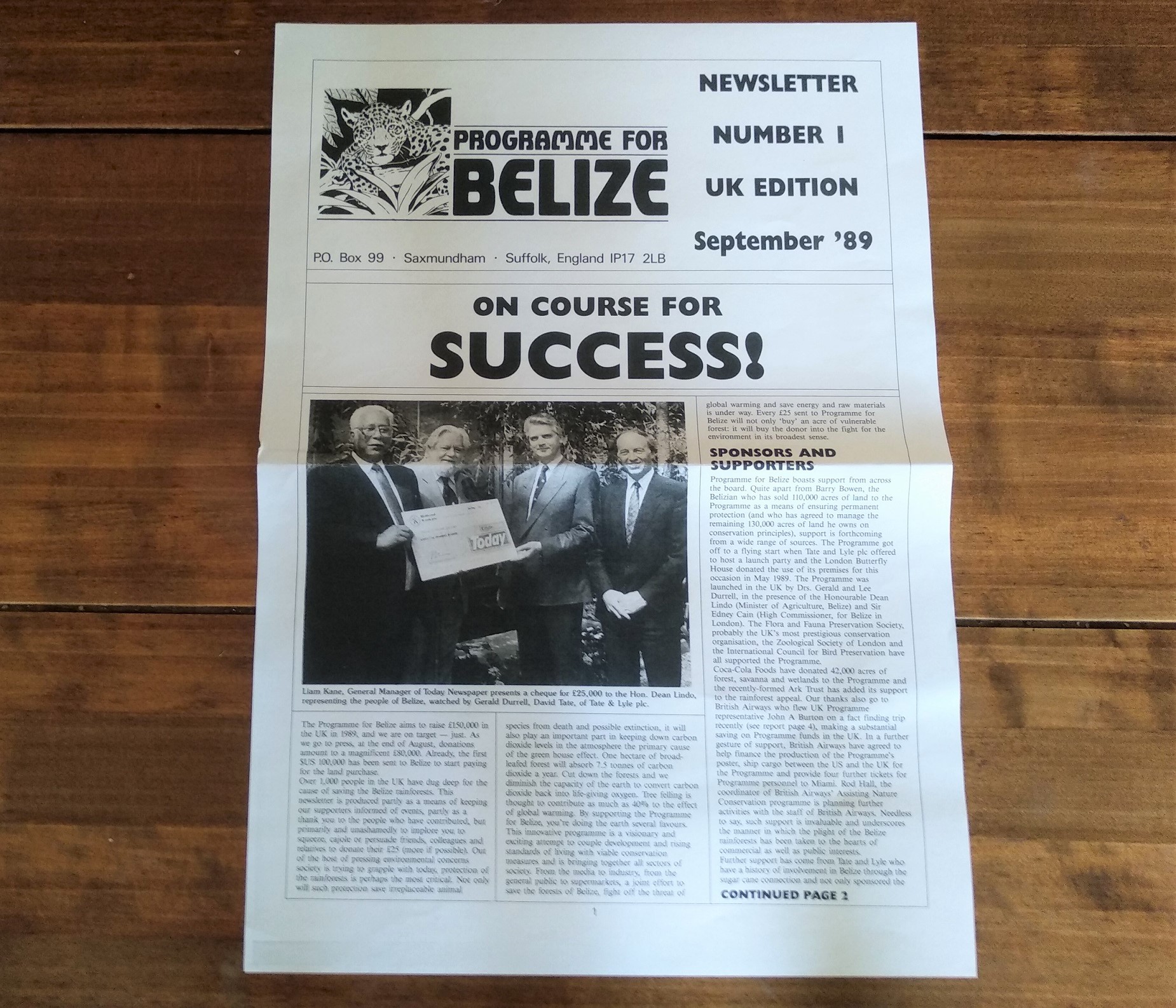 As evidenced by WLT’s first ever newsletter, that realisation – that what nature loses in Belize will be felt in Boston too – ran through the Rio Bravo campaign. “Tree felling is thought to contribute as much as 40% to the effect of global warming. By supporting the Programme for Belize, you’re doing the earth several favours,” reads the case made on the cover of the September 1989 newsletter issue.
