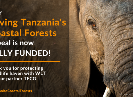 Tanzania’s endemic bushbaby – the Rondo Dwarf Galago is Endangered. WLT’s new appeal to connect Tanzania’s coastal forests will help populations of this small but charismatic species recover. Image credit: Andrew Perkin.