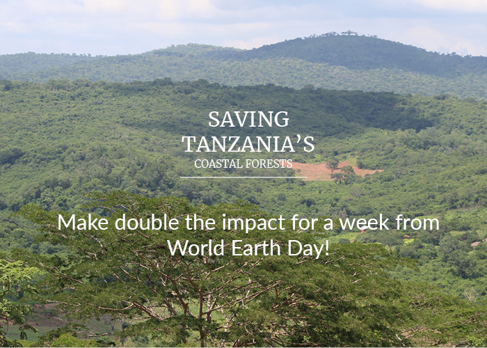 So much lies at stake in southeastern Tanzania and it cannot afford the business as usual of deforestation but with your help, a different future is possible – one where starting on World Earth Day this week, you become part of a movement for Africa’s wildlife and watch your donations make twice the impact. Join us to make a stand for Tanzania’s coastal forests in two days’ time!