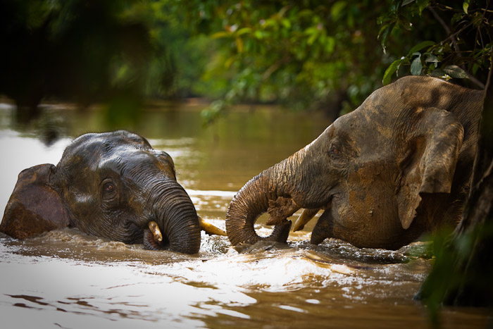Swimming, bathing, drinking and crossing over – the Kinabatangan River is an essential natural resource for Borneo’s Endangered elephant populations. You can help our partner HUTAN protect rainforest on both sides of the river by donating to our appeal. Credit: Paul Swen
