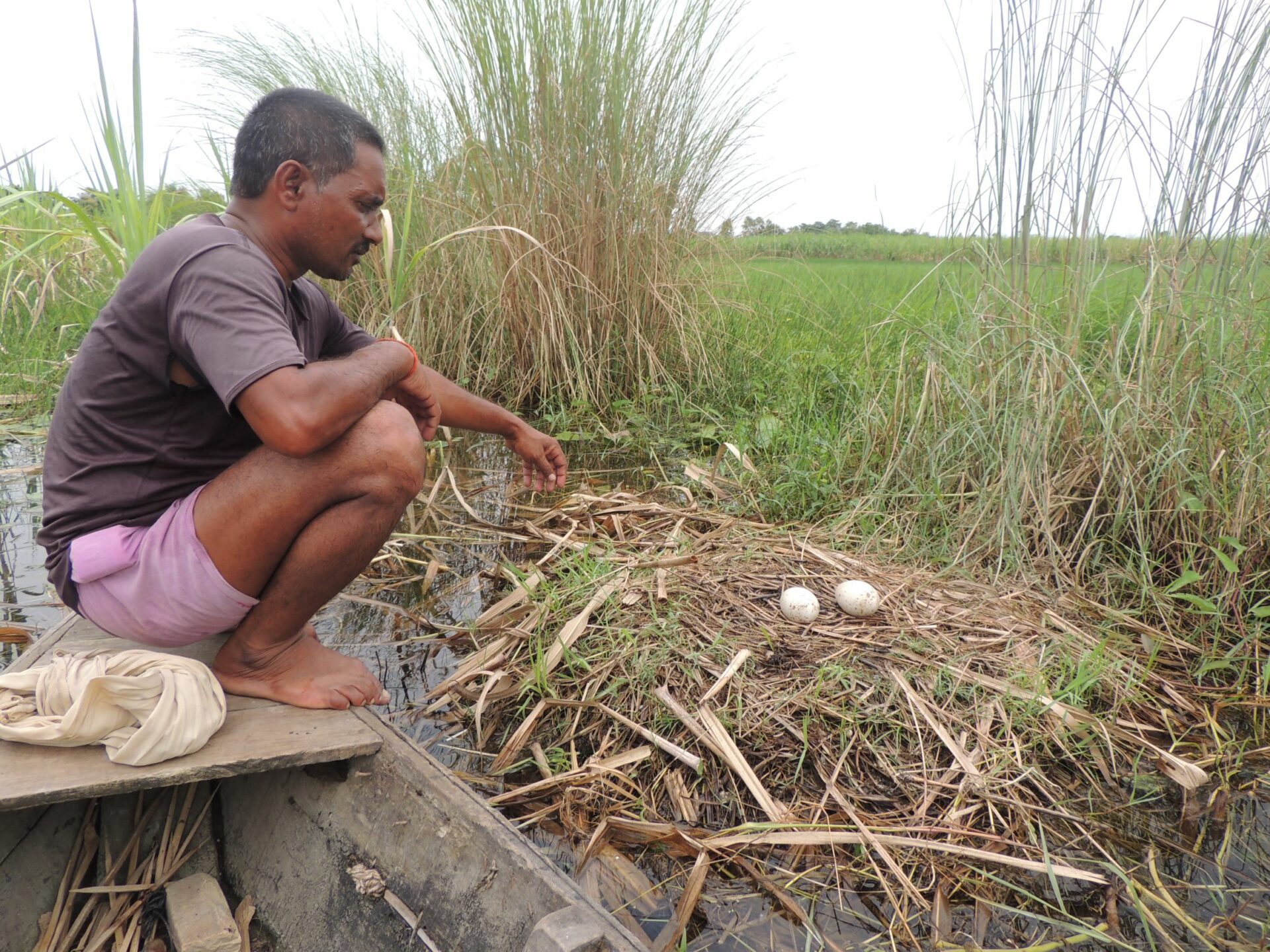 This year, community members like Govind monitored 134 Sarus Crane nests in 10 different districts. Credit: WTI