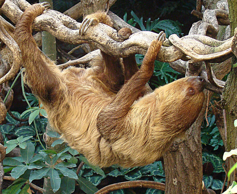 The Linnaeus’s Two-toed Sloth, also known as the Southern Two-toed sloth, takes its name from the two curved claws at the end of each limb.