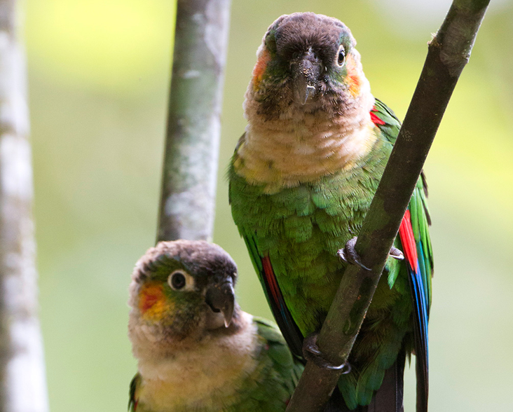 The 276 acre (112 hectare) property forms part of the existing Reserva Biologica San Francisco situated in the north of Podocarpus – El Condor Biosphere Reserve. It consists of tropical mountain forest and borders NCEcuador’s San Francisco Private Reserve, which means it helps to consolidate a biological corridor between Podocarpus National Park and Bosque Protector Corazon de Oro. The reserve is home to the White-breasted Parakeet (Pyrrhura albipectus), which is endemic to southern Ecuador and northern Peru.